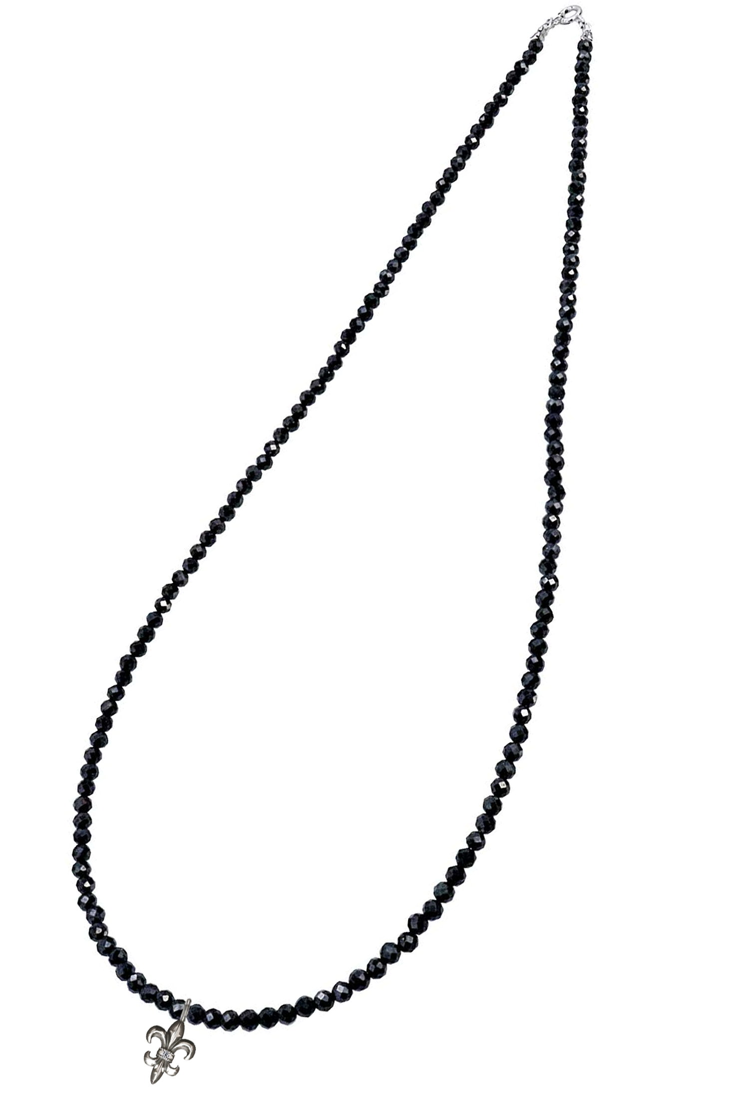 ブラックスピネルは輝きが強い石で、さらに、シルバーFDLにラボダイヤという煌びやかなアクセサリーは、これからの季節に重ね付けにも最適な逸品。
